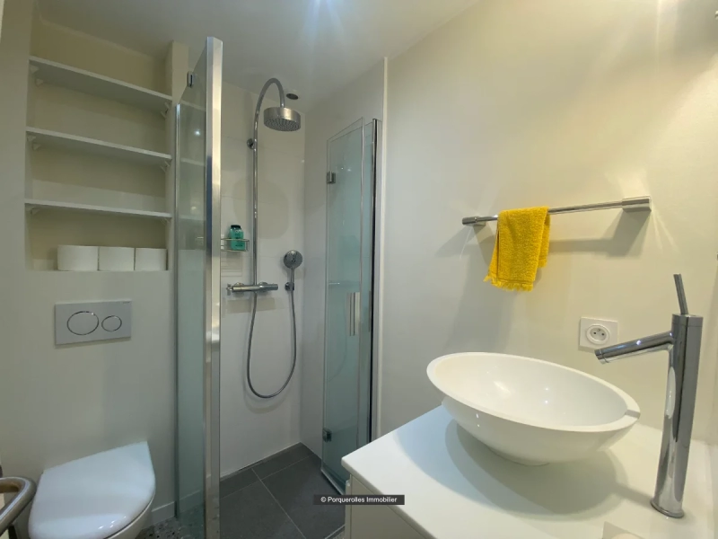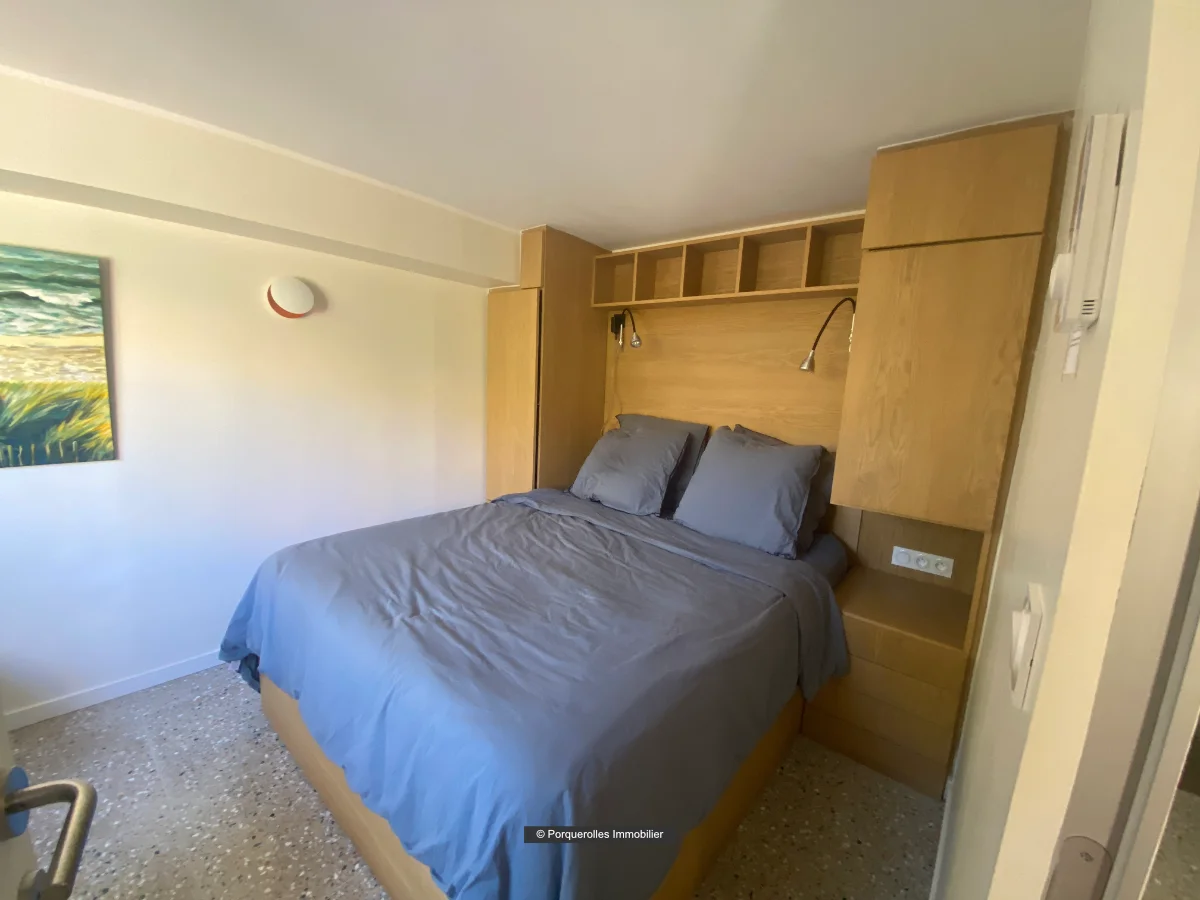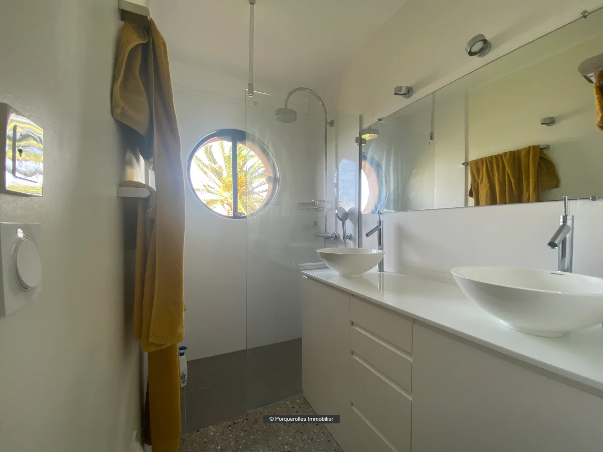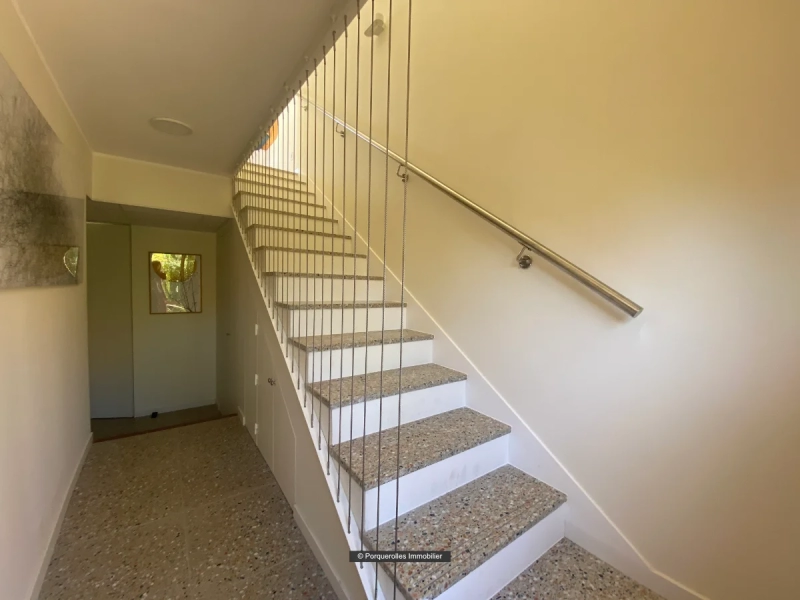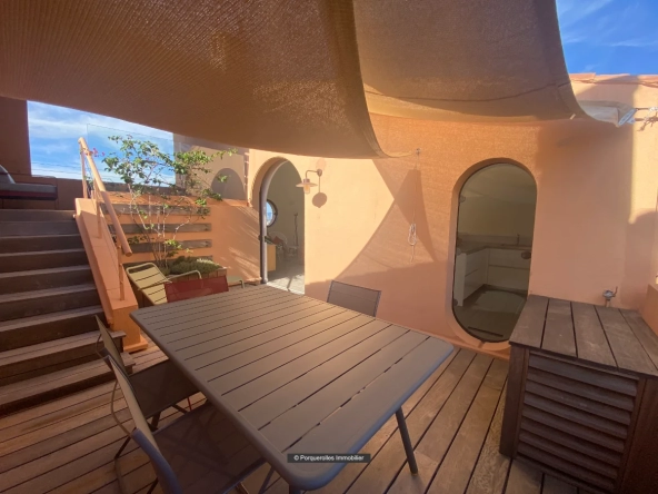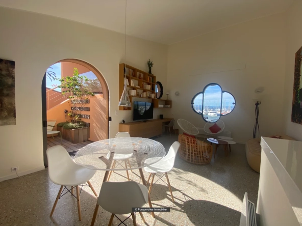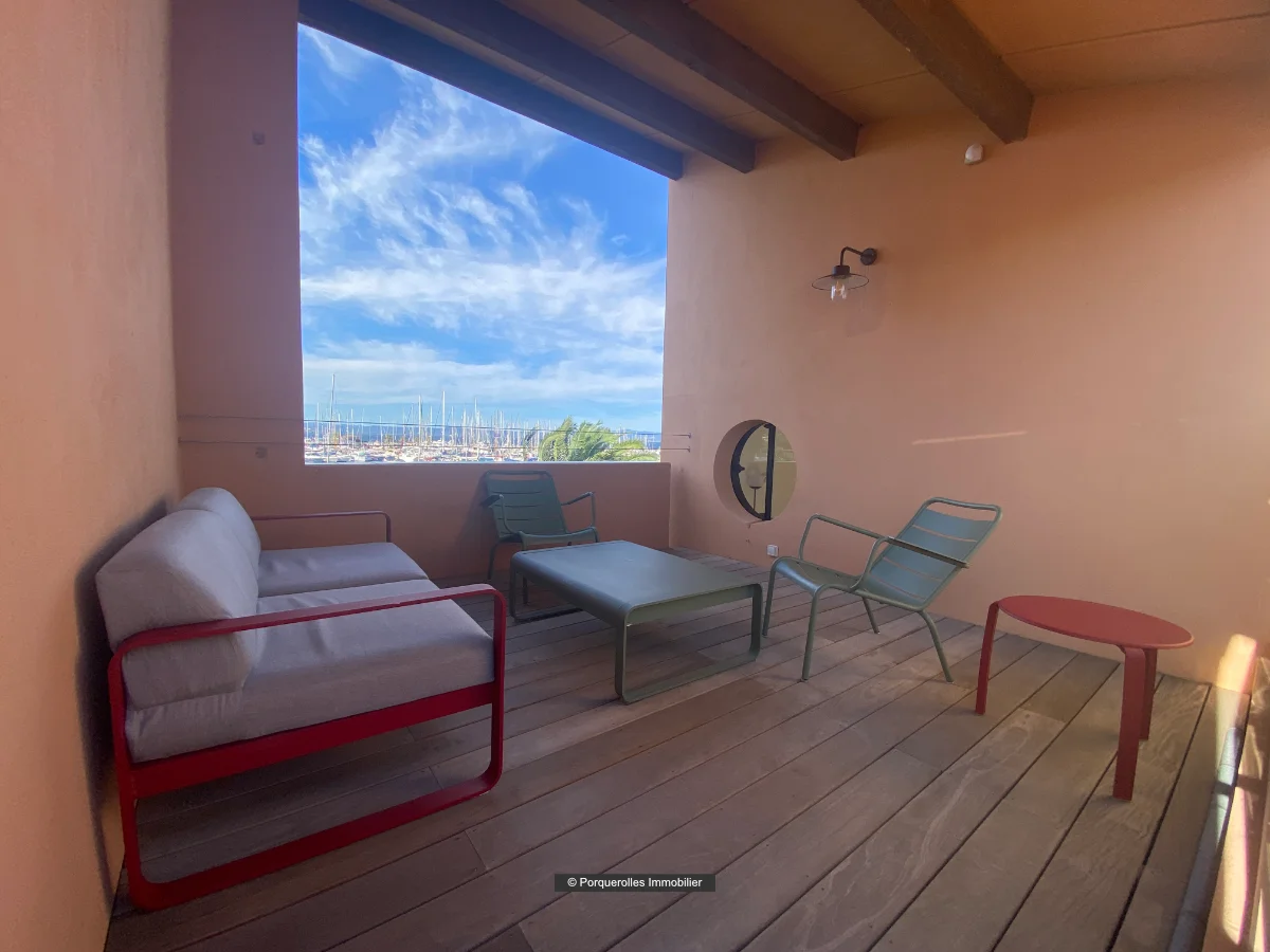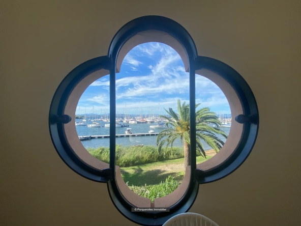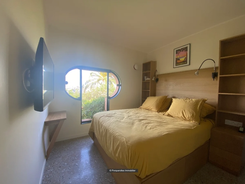 Rare à Porquerolles ! Superbe appartement duplex avec 3 pièces, entièrement refait à neuf avec goût par un architecte, mobilier de designer, vue mer.