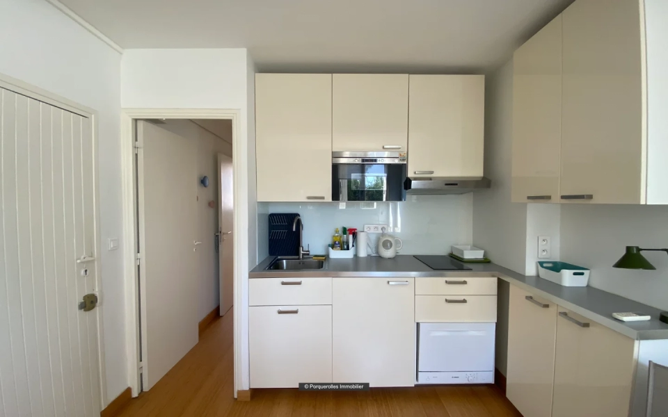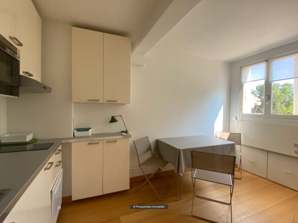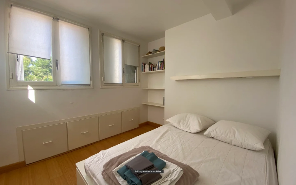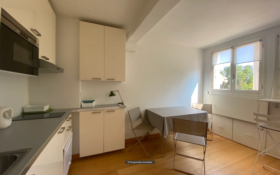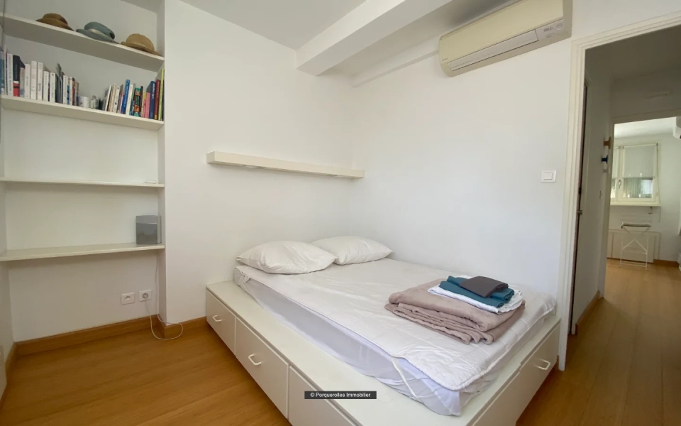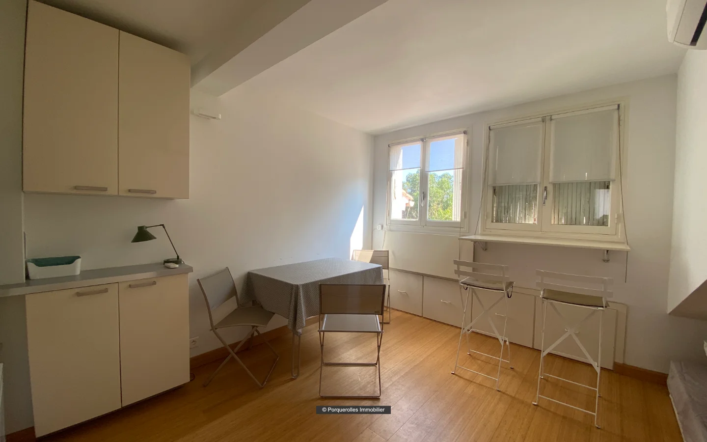 Charmant Studio de 30 m² environ, situé sur la place du village de Porquerolles, au 3ème et dernier étage d’un petit immeuble.