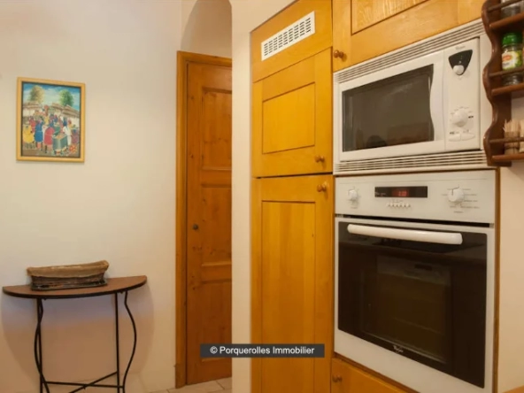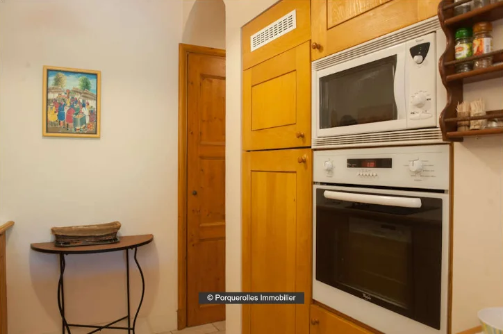 Cuisine : Incorporée au living – 4 feux vitrocéramique + Four + Réfrigérateur + Micro ondes + Lave Vaisselle + Lave Linge