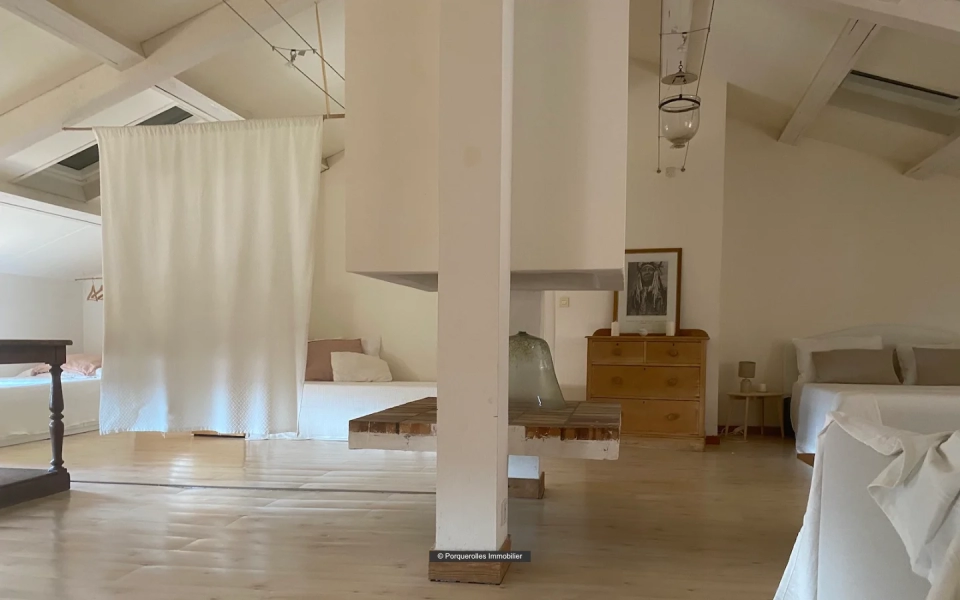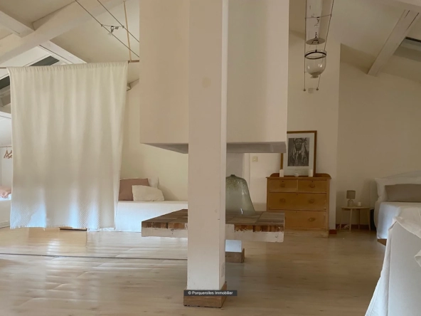 Le Loft du 2ᵉ étage : 76 m² avec 1 lit en 160, 2 lit en 90 et une salle de bain.
